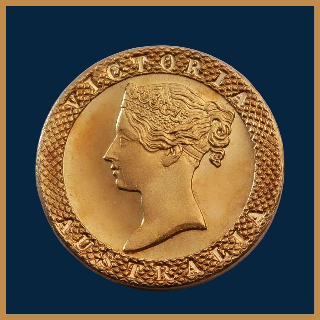 Obverse: A broad raised engine-turned rim encircles a superb portrait of Queen Victoria wearing a jewelled crown, thought to be executed by William Taylor in 1860, and the words VICTORIA and AUSTRALIA incused in the rim.