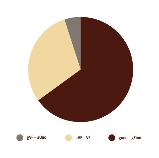 The pie chart shown above, and in particular the grey area, clearly shows the extreme scarcity of a 1930 Penny at this quality level.