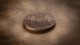The Spanish Silver Dollar showing the design of the shield and the quadrants.