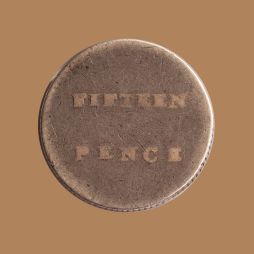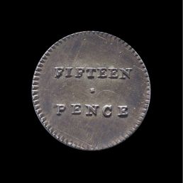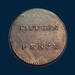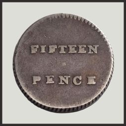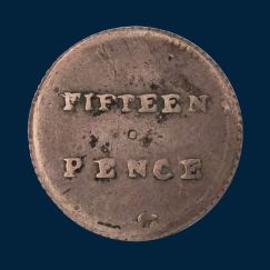 Circled, Henshall's claim to fame on the Dump reverse between 'FIFTEEN' and 'PENCE'.