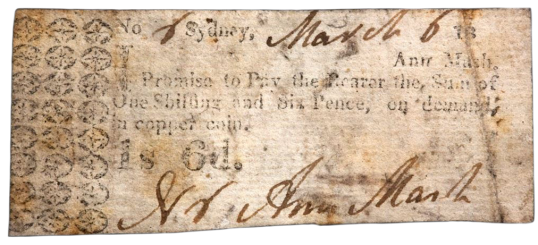 The liberal use of rum as a medium of barter flourished. And every merchant became a self appointed banker issuing promissory notes. Written notes, scraps of paper both literally and figuratively, were used indiscriminately by a broad cross section of the population to settle debts, including government, the judiciary, free settlers and convicts alike.