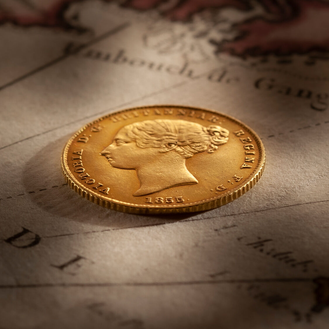 A sovereign in June 1855 and a half sovereign in July of the same year.