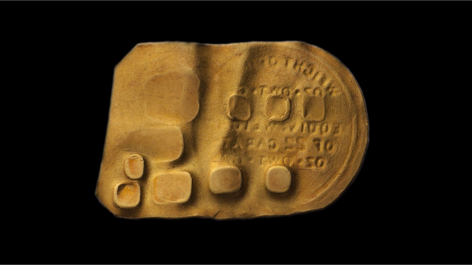 This Type II Ingot was displayed in 2001 at the opening of the National Museum of Australia, Canberra, as part of an Exhibition of gold artefacts from around the world. The opening of the Museum was the centrepiece of Australia’s Centenary of Federation celebrations.