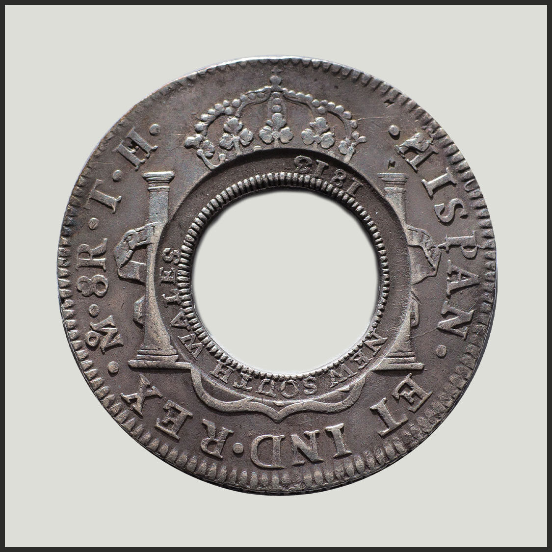 The Holey Dollars were officially known as ring, pierced or colonial dollars and although ‘holey’ was undoubtedly applied to them from the outset, the actual term ‘holey’ dollar did not appear in print until the 1820s.