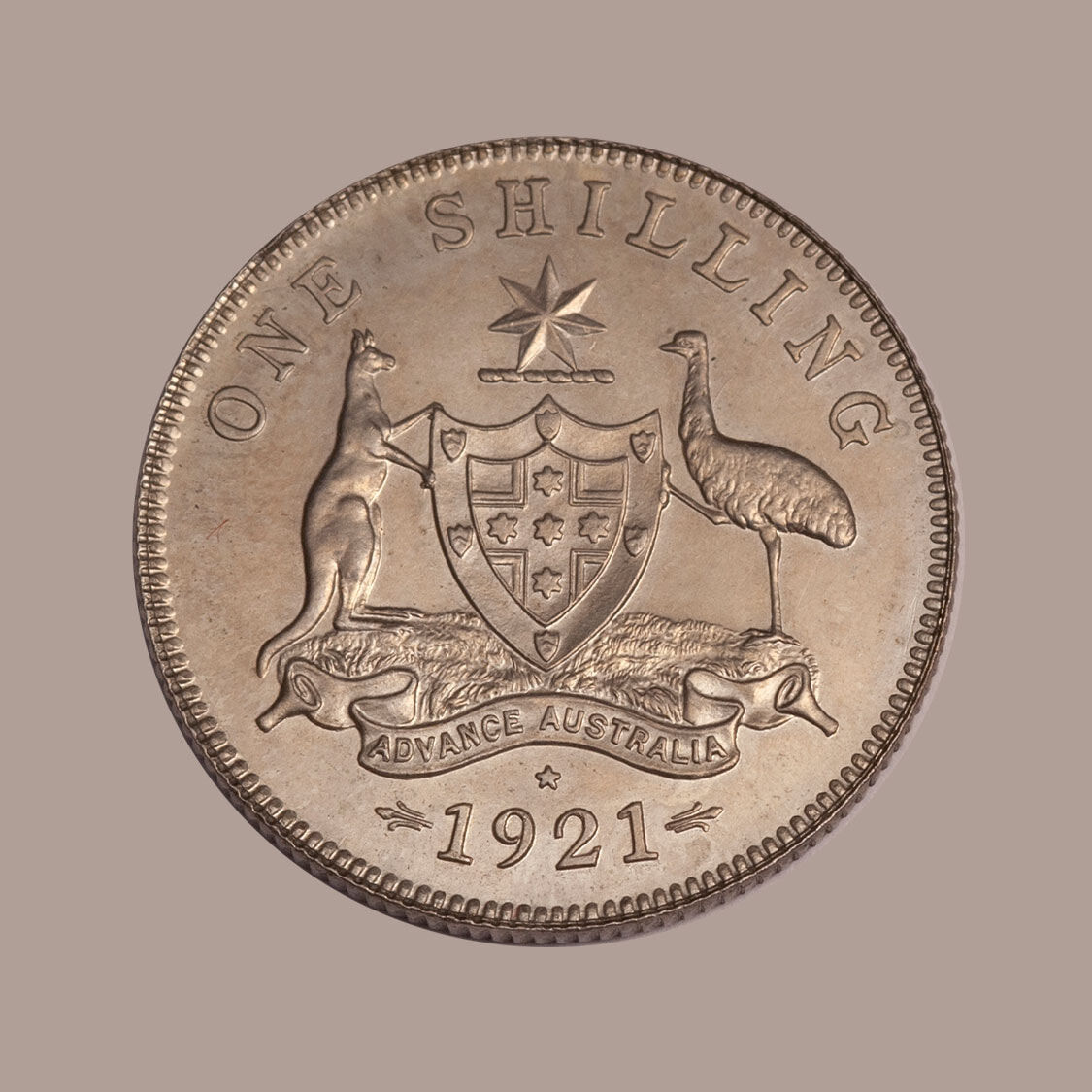 The Proof 1921 Star Shilling has a brilliant reverse, reminiscent of the unique Proof 1920 Shilling (ex A. M. Le Souef and Syd Hagley) sold by Coinworks in 2012. Note the definitive star above the date.