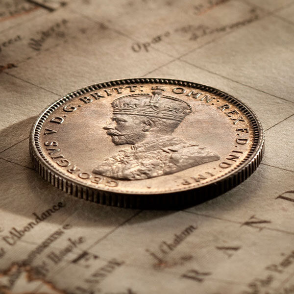 • Australia’s rarest Commonwealth coin was created during this testing process, the 1919 Pattern Shilling. The coin was struck in a .625 fine and counter-stamped with two ‘S’s on both sides of the obverse and reverse fields so that it would be easily distinguished and to prevent it from accidentally going into circulation.