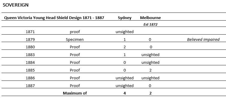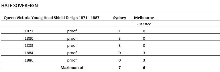 In terms of the proof Young Head Shield half sovereigns, we have sold the 1871S Proof Half Sovereign, an 1880S Proof Half Sovereign and an 1884M Proof Half Sovereign. The offering of the Proof 1883S Half Sovereign makes it the fourth in this area of the market. And again, these quantities pertain to 40+ years of trading.