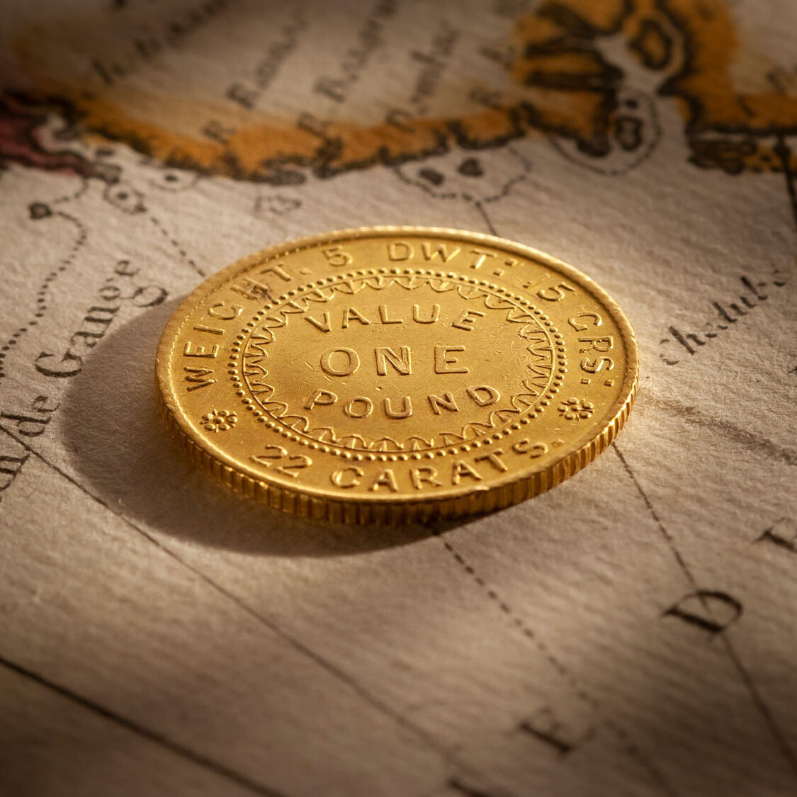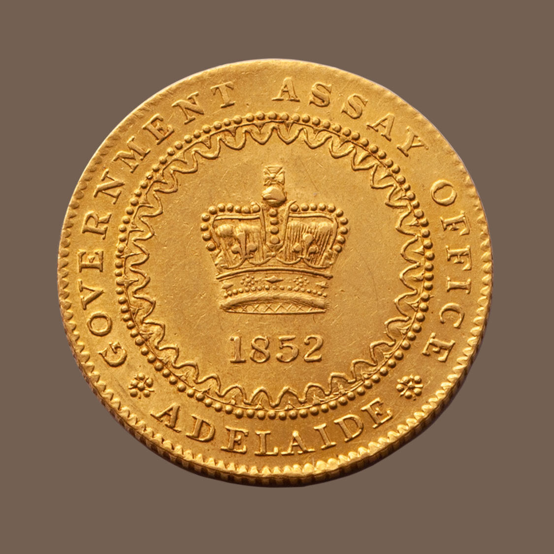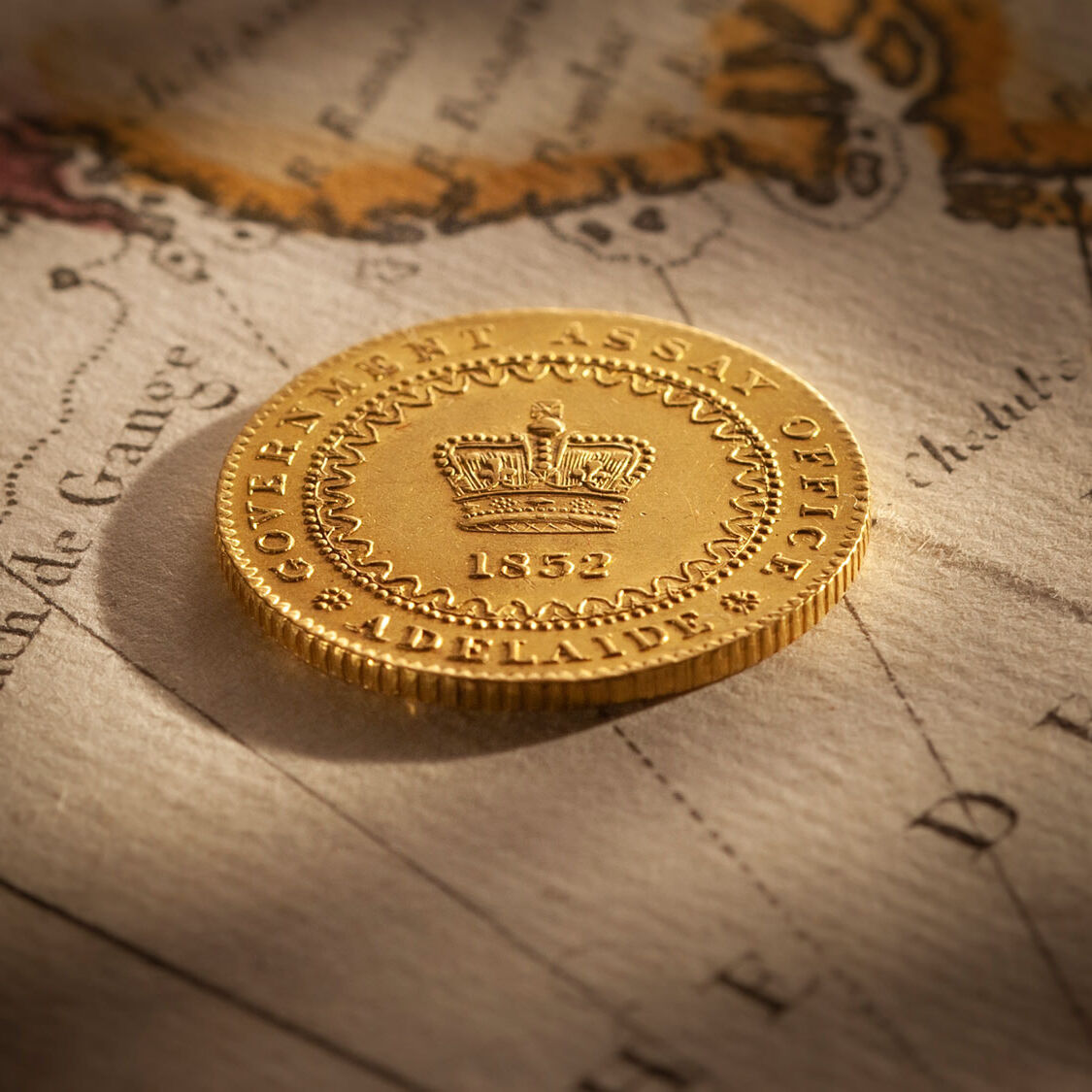 Several coins were spawned by the Gold Rush, including our first gold coin, the 1852 Adelaide Pound.